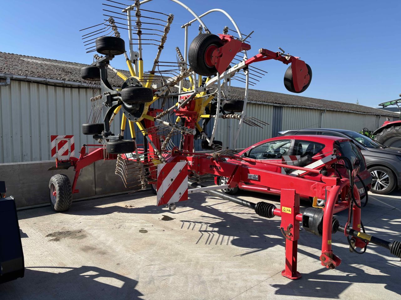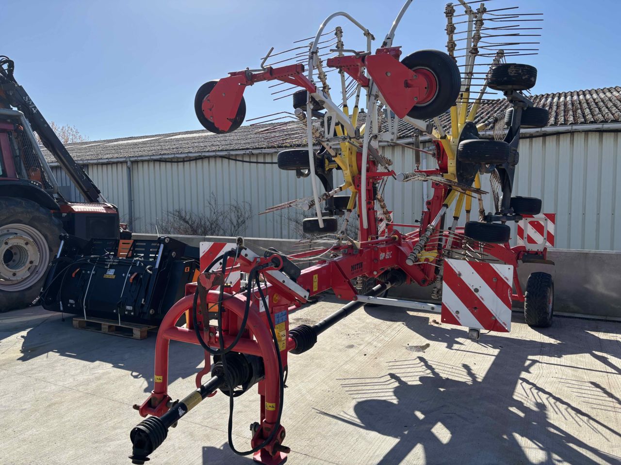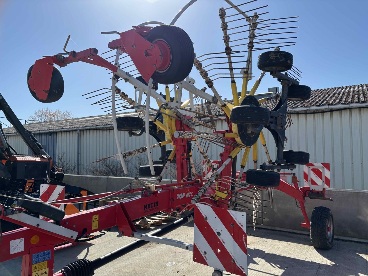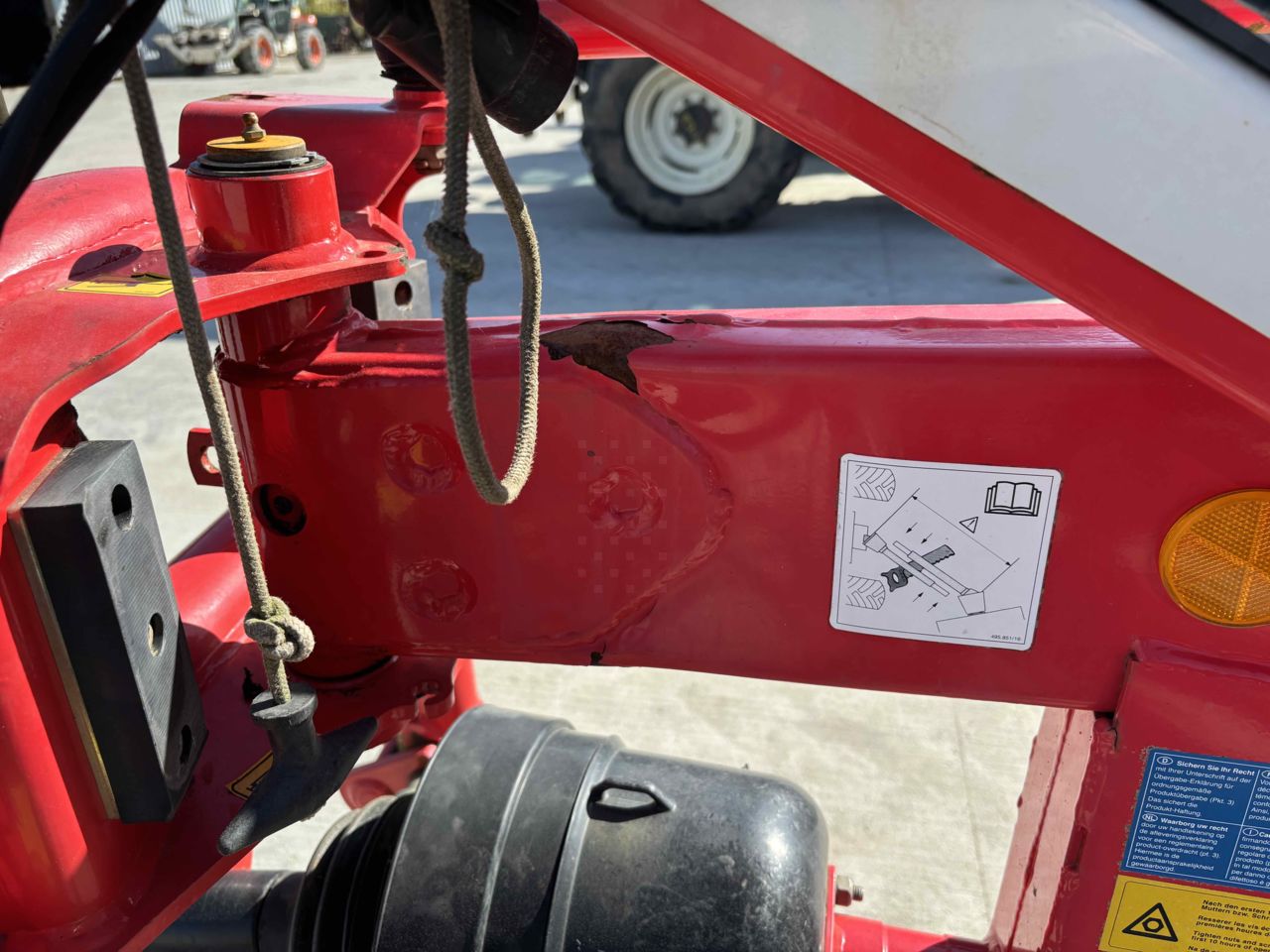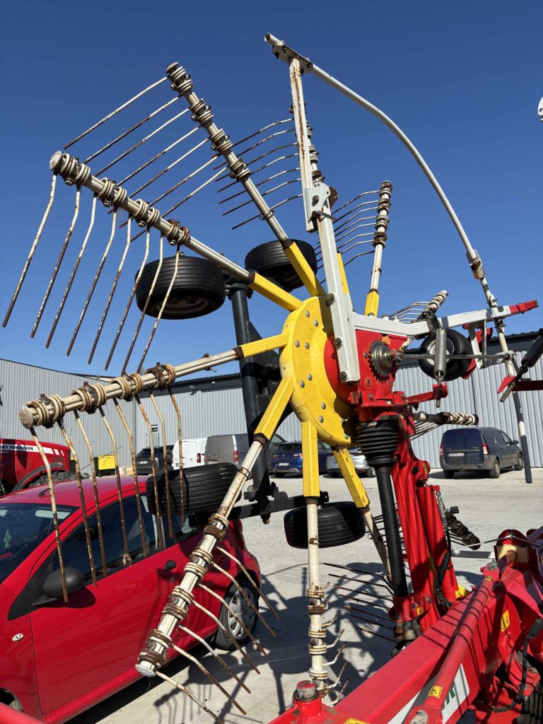 LARGEUR DE TRAVAIL 5.90M 11 BRAS PNEU CHASSIS 260/70-15.3 ROUES MULTITAST ! pour un suivi du terrain au top ! poutre châssis avant légèrement enfoncée.