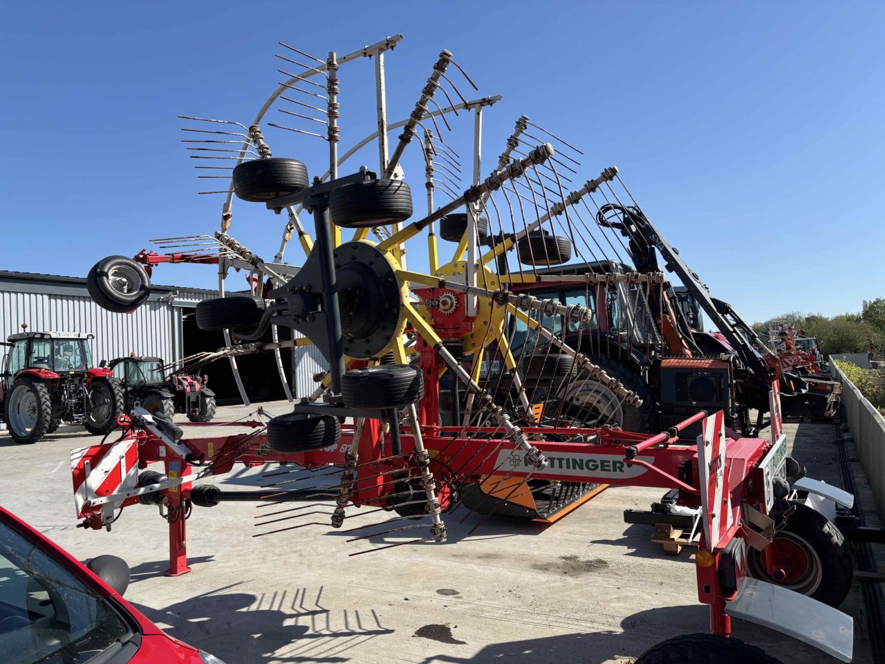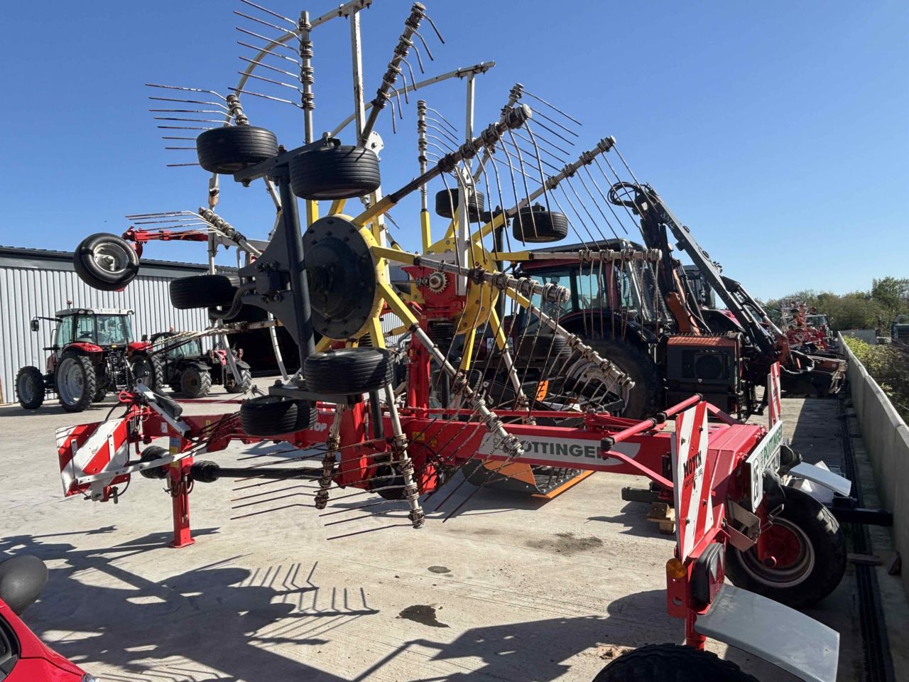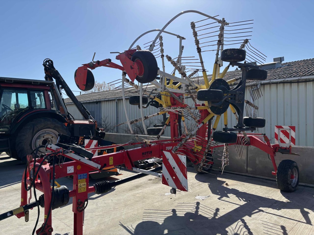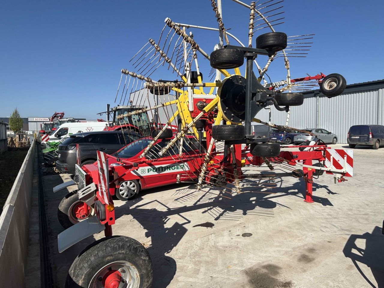 LARGEUR DE TRAVAIL 5.90M 11 BRAS PNEU CHASSIS 260/70-15.3 ROUES MULTITAST ! pour un suivi du terrain au top ! poutre châssis avant légèrement enfoncée.