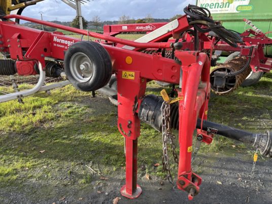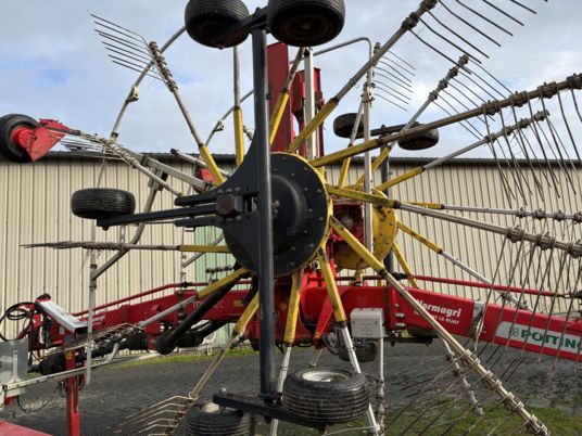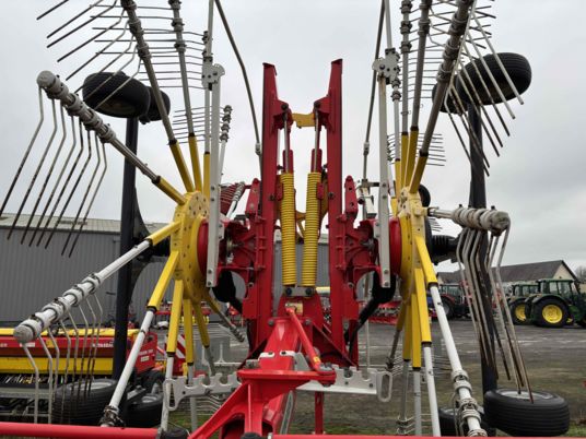 LARGEUR DE TRAVAIL DE 7.70M A 8.40M REGLAGE HYDRAULIQUE DE LA LARGEUR DE TRAVAIL ROUE CHASSIS DIRECTRICE CARDAN GRAND ANGLE ROUE LIBRE ESSIEU BALANCIER 5 ROUES KIT MULTITAST REGLAGE INDIVIDUEL DES ROTORS ROTOR DE 3.70M DE DIAMETRE 13 BRAS PAR ROTOR ROUE DE SECOUR + SUPPORT PANNEAUX DE SIGNALISATION ET ECLAIRAGE PNEUMATIQUE 380/55R17