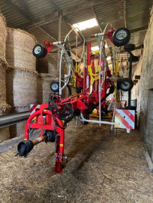 LARGEUR DE TRAVAIL 7.70M A 8.40M ESSIEUX 5 ROUES + ROUE MULTITAST DIAMETRE DES ROTORS 3.70M 13 BRAS 4 DENTS PAR BRAS PRE-SELECTION
