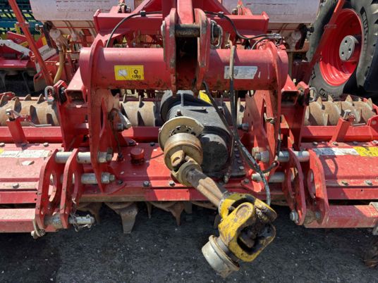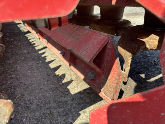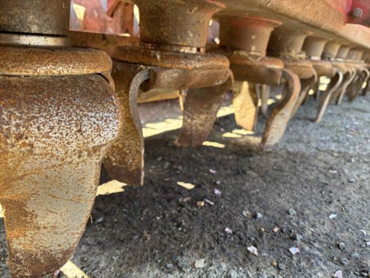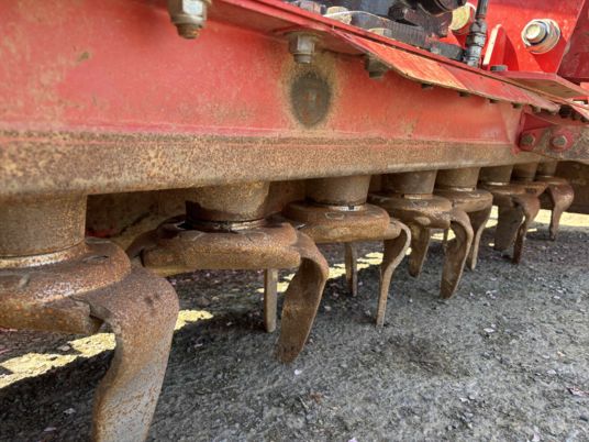 Combiné herse + semoir herse de 2020 Boîtier 180 12 rotors enlèvement rapide des dents Barre niveleuse Packer 575 Attelage hydraulique 2 vérins Prise de force débouchant + SEMOIR de 2007 4 rangs à soc Fertilisâteurs à soc Micro Prise de force 1000tr/mn
