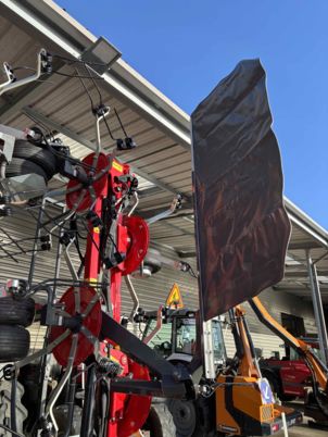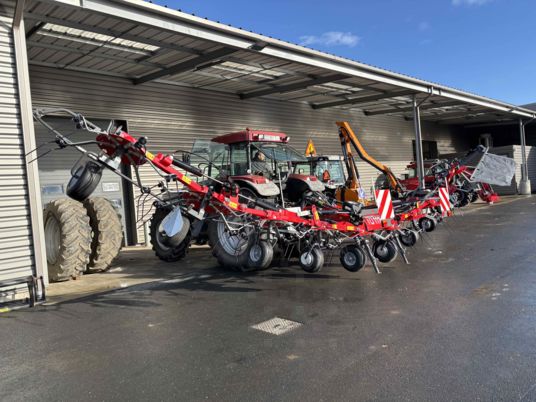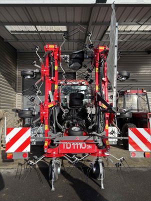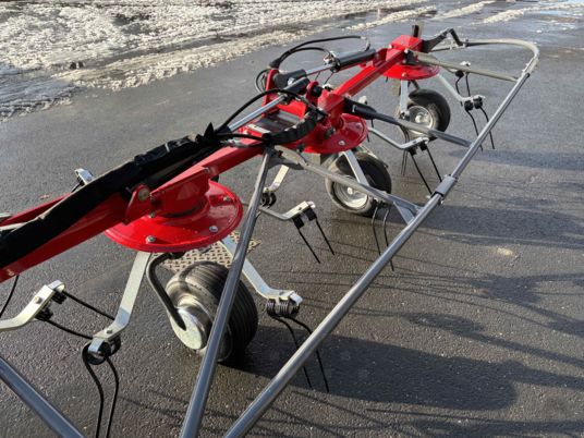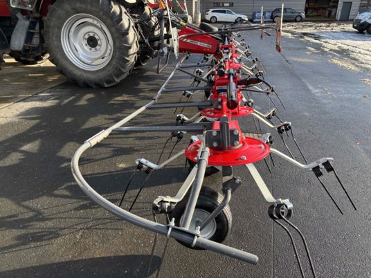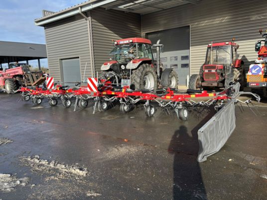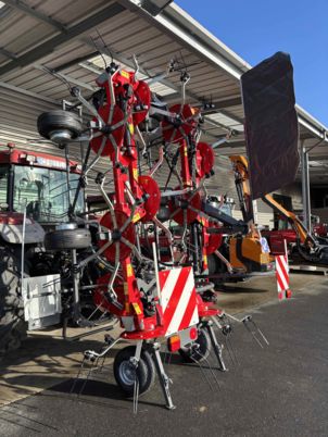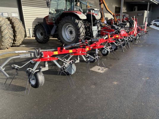FANEUSE NEUVE machine d'exposition, foire 10 toupies fanage de bordure Roue de secours 16/6.50-8 Dispositif de verrouillage hydraulique Signalisation Machine compacte pour une grande largeur de travail machine avec beaucoup de dégagement.