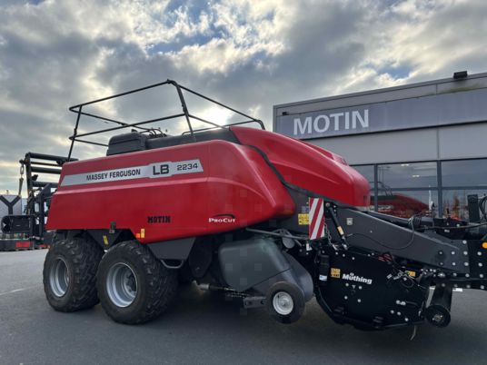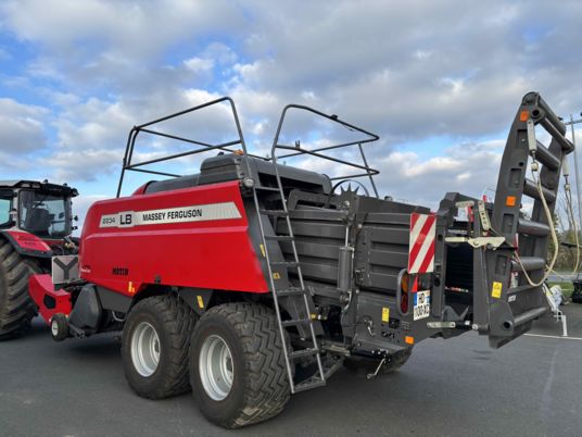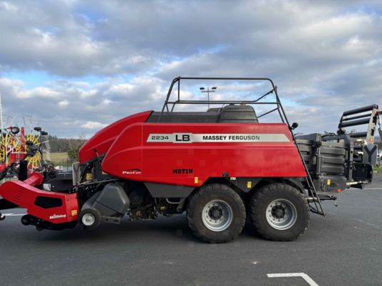 TRES BEAU ! Big baller Massey Ferguson 2234 TC MY2024 Pick up 5 rangées de dents, avec cerceaux Téflon Rotor à doigts 650mm, tiroir avec 26 ctx sur sécurité hydraulique, Empaqueteur a fourche et ameneur. Piston 47cps minutes, volet de compression en x 6 noueurs HESSTON, avec turbine de soufflerie Essieux tandem, freinage pneumatique, 620/50R22,5 Pesée, feux LED 3550 bottes Broyeur sous flèche Muthing de 2025 88ctx, deux rangées de contre couteaux Carénage pour guidage du flux Chariot de dépose, béquille hydraulique