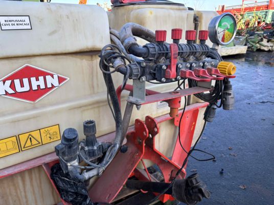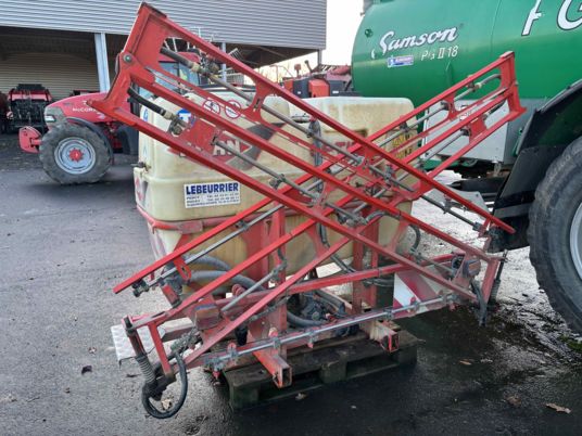 Pulvérisateur porté, 800l rampe à repliage manuel, 12m, pompe 105l/ min, 4 tronçons. Pied de rampe et châssis en bon état.