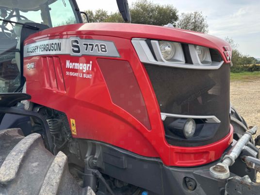 BEAU MASSEY FERGUSON MF 7718 S DYNA 6 MOTEUR SISU TRANSMISSION DYNA 6 50 KM/H VERSION EFFICIENT POMPE LS 110L/M 4 DISTRIBUTEURS DONT 2 ELECTRIQUES LEVIER SMS ET MULITPAD PONT ET CABINE SUSPENDUS RELEVAGE AVANT PNEUS NEUF POSSIBILITE INSTALLATION AUTOGUIDAGE RTK (volant électrique) pour 5800 eur HT supplémentaire.